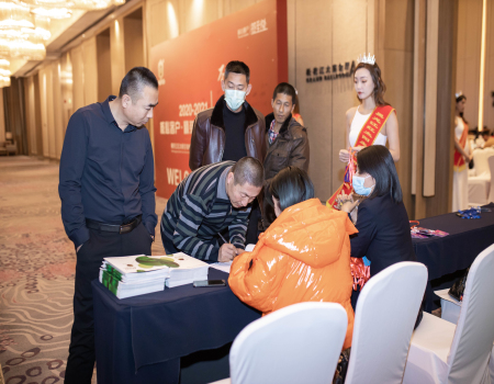 接着,总经理代表公司向会场嘉宾介绍了品牌形象、产品品质、服务品质、企业实力以及营销、策略等方面的分析,向意向经销商阐释了红太阳生物的品牌竞争力和发展方向,及产业现状及合作优势,让客户更深入地了解红太阳生物。招商政策鼓舞了现场客户,宣布开始签约后他们便冲上台排队等候签约。